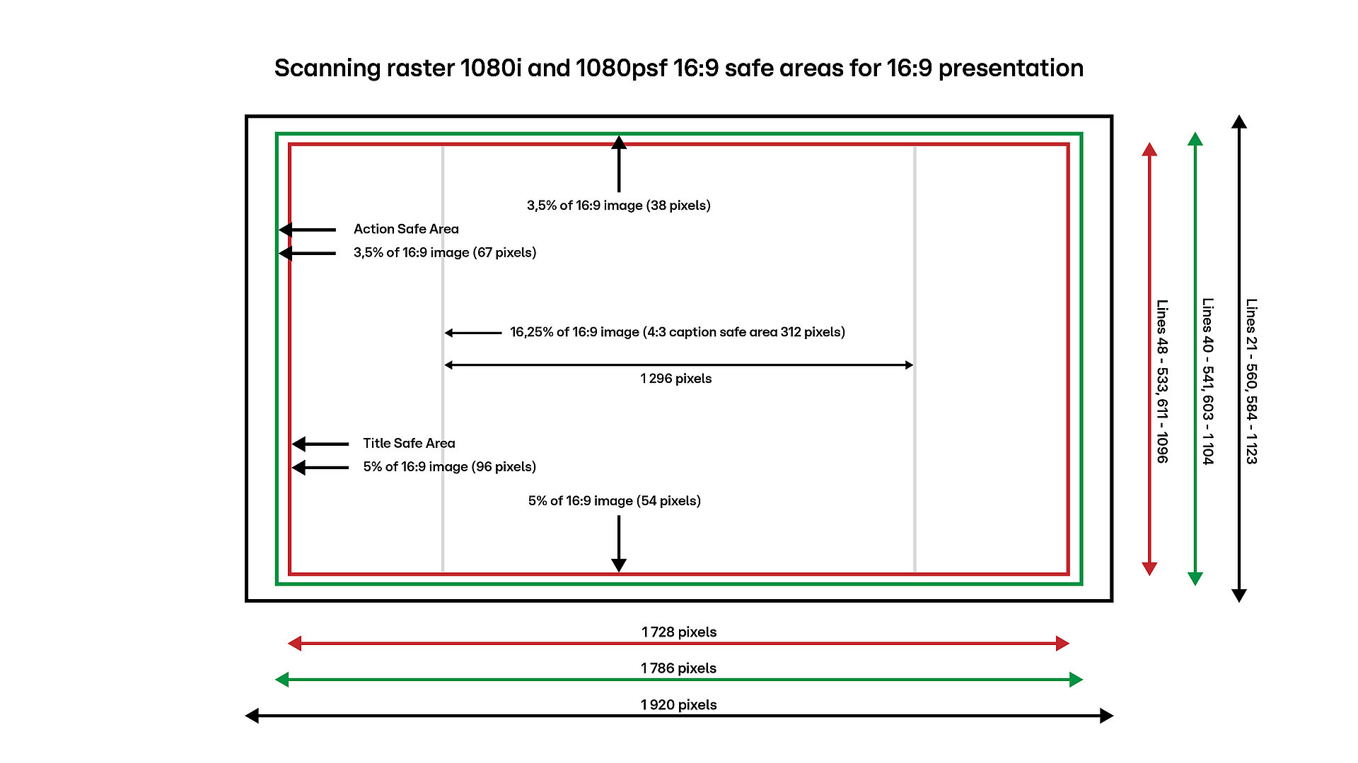 Um sicherzustellen, dass alle bildwichtigen Inhalte auf (Consumer-)Endgeräten korrekt dargestellt werden, müssen die in EBU R 95 definierten Safe Areas – insbesondere die Action Safe Area – eingehalten werden.