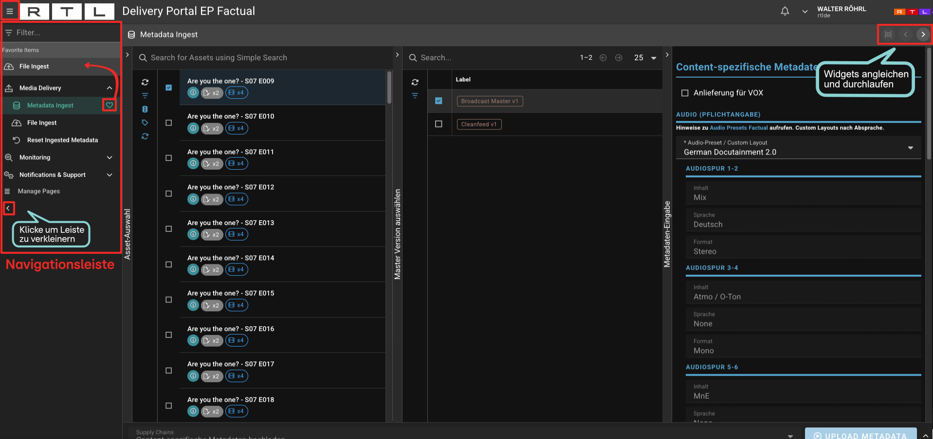 - Über das sogenannte “Burger-Menü”, den drei Streifen in der oberen linken Ecke, lässt sich die gesamte Navigation aus- und einblenden.